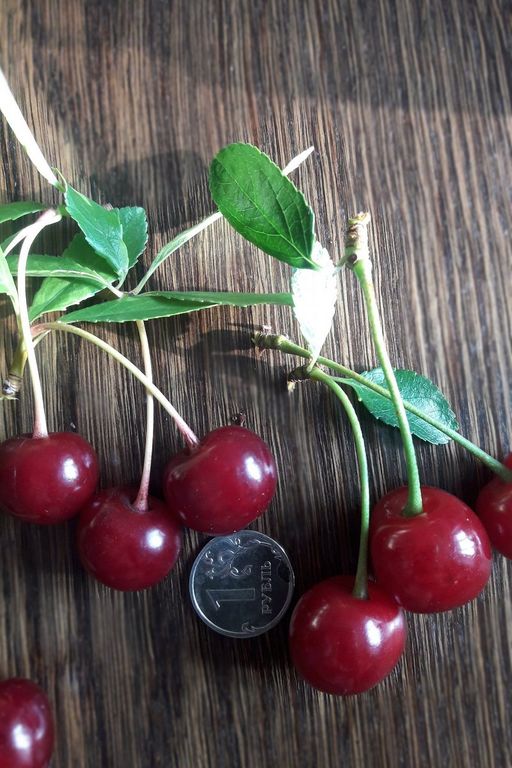 Плоды крупные, массой 5,0 г, одномерные, округлой формы. Основная окраска плода темно-краcная.