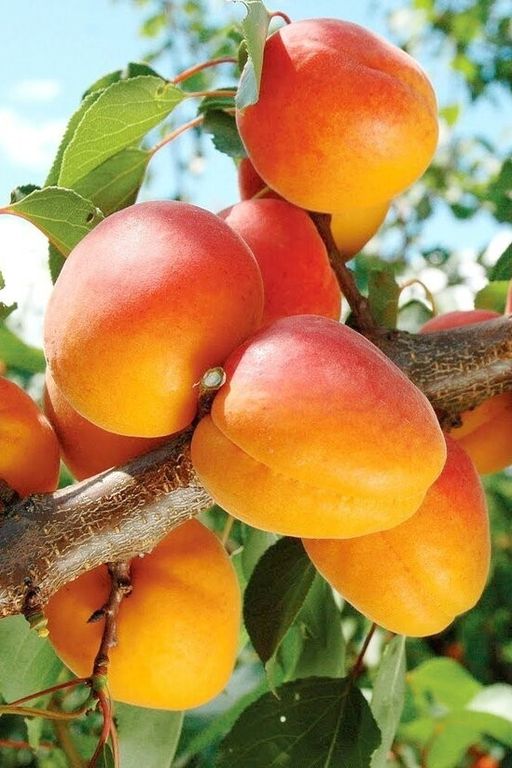 Плоды округло-овальной формы, массой 55 г. Кожица опушенная, средней толщины. Окраска желто-оранжевая, покровная - в виде темно-красного густого румянца. Мякоть оранжевая, сочная, нежная, тающая, приятного сладкого вкуса. Ядро косточки сладкое.