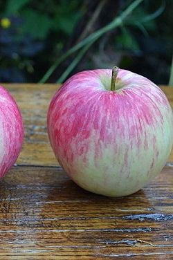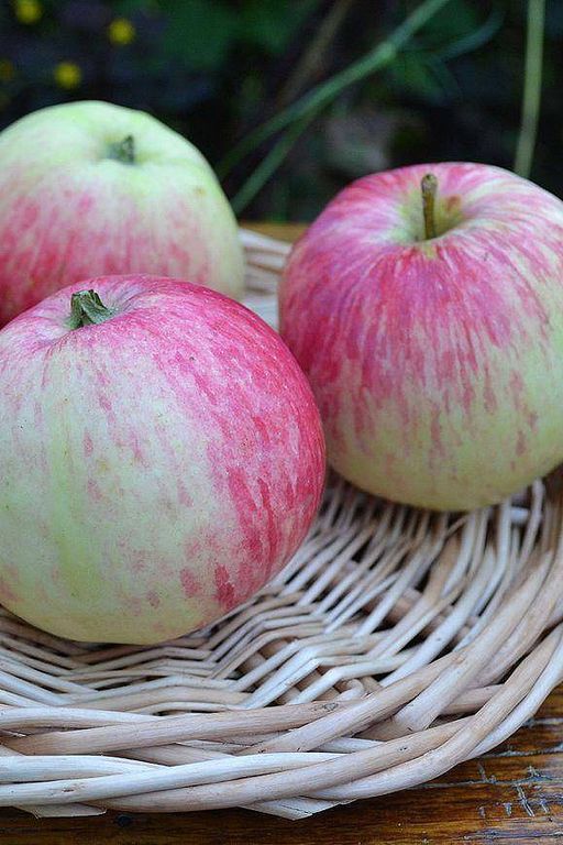 Плоды средние, 90-140 г, ширококонические, гладкие, правильной формы. Кожица толстая, гладкая, маслянистая. Окраска зеленоватая, покровная – полосатый красный румянец на меньшей части плода; в состоянии потребительской зрелости – беловатая с полосатым красным румянцем. Оценка внешнего вида – 5 баллов.