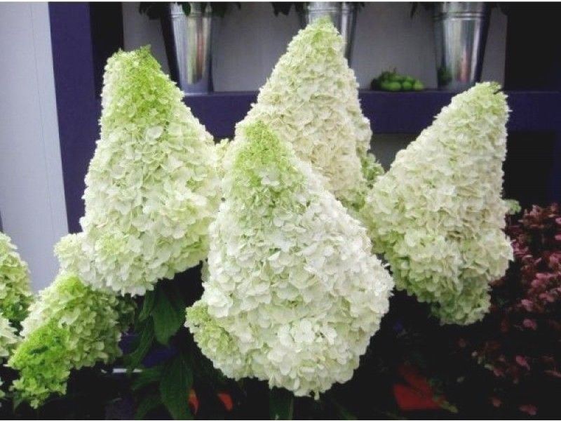Цветы вначале слегка фисташковые, затем кремово - белые и к концу лета появляется нежно-розовый цвет. Соцветия распределены равномерно по всему кусту, создавая впечатление огромного цветущего букета.