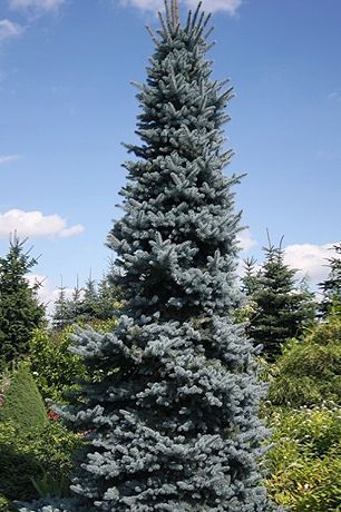 Ель колючая Олденбург (Oldenburg) – быстрорастущий сорт с очень яркой серебристо — голубой хвоей. Крона плотная, конусовидная. Ветви образуют плотные правильные ярусы, довольно рано формирует прямой лидирующий побег.