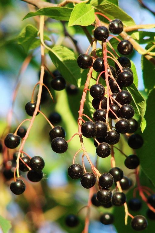 Плод представляет собой костянку черного цвета, шаровидную, диаметром 8-10мм. На вкус плоды сладковатые, но сильно вяжущие. Плоды созревают в июле-августе.