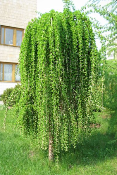 Лиственница европейская Репенс (Repens) – в основном выращивается в штамбовой форме, поэтому побеги тонкие, гибкие, изящно свисают вниз, образуя компактную широкую крону. Высота зависит от места прививки.