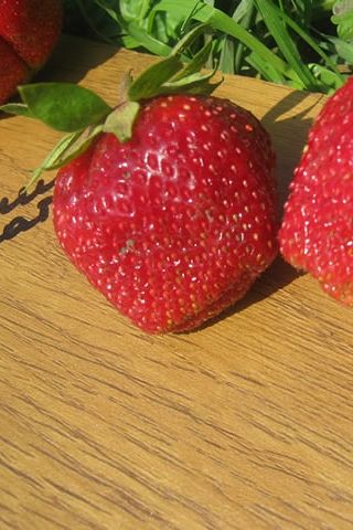 Ягоды массой 60-120 г. тёмно-красные, гребенчатой, конусообразно-округлой формы. Вкус кисло-сладкий, сахаристость высокая, кислинка умеренная, аромат с земляничными нотками. Мякоть сочная, мясистая, плотная, прекрасно переносит транспортировку. Урожай с куста 700-900 г. Холод и засуха для сорта не страшны, растение и плоды устойчивы ко многим болезням.