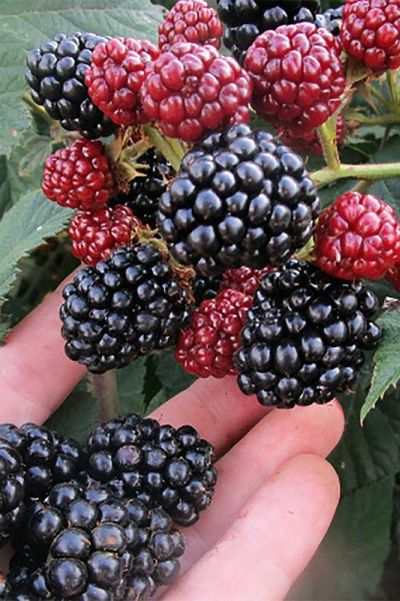 Ягоды прекрасны внешне - крупные (5-10 г), правильной, формы, поверхность блестящая, окрас зрелых ягод черный, с легким синеватым оттенком. Мякоть сочная, но плотная, сладкого, слегка терпкого вкуса, с выраженным ежевичным ароматом. Иногда отмечают некую кислинку, но при полном созревании очень сахаристые. Ягоды прекрасно транспорти-руются, созревают не одновременно.