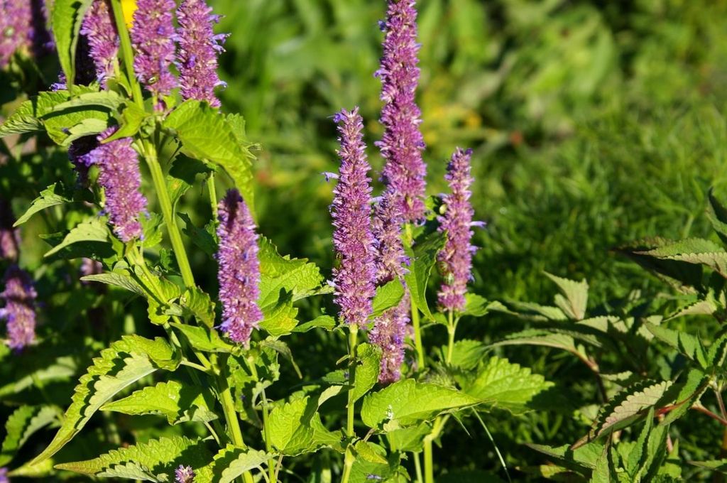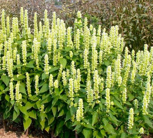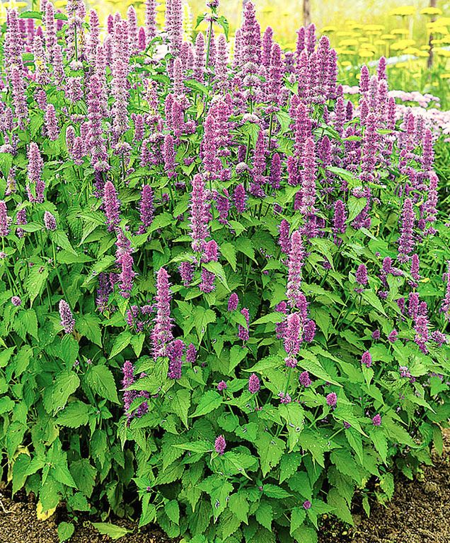 Растение высотой 70-100 см. Имеет многочисленные побеги, листья сердцевидно-ланцетовидной формы 5-7 см в длину. Цветет в июле-сентябре синими, белыми цветочками, цветение имеет трубчатую форму и душистый аромат, с нежно-пряным ароматом аниса и нотками мяты.