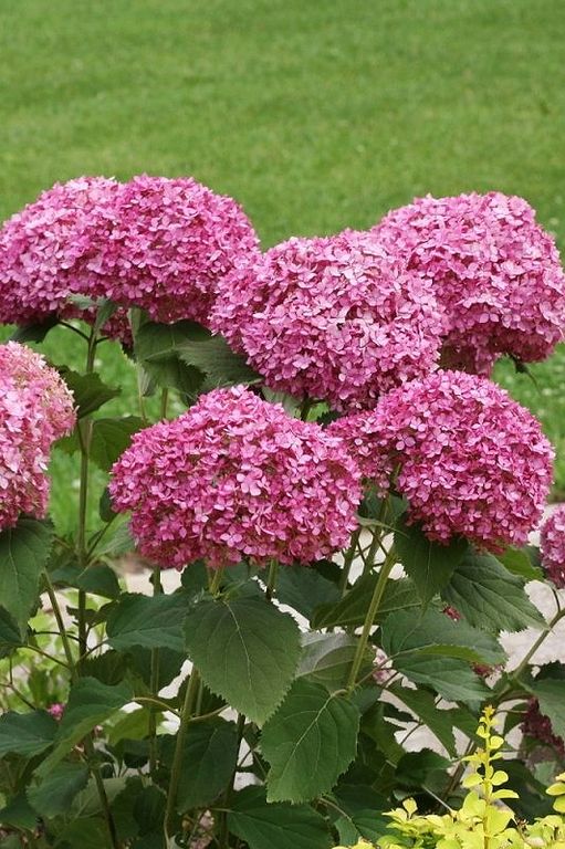 Гортензия Pink Annabelle - ценится за обильное цветение, которое начинается в июне и заканчивается в сентябре. Розовые бутоны собраны в большие и пушистые соцветия шарообразной формы. Их диаметр может составлять до 30 см.