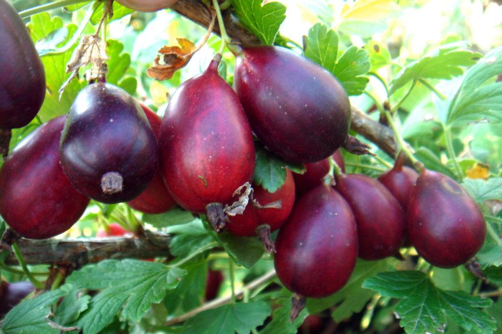 Плоды массой 5г, круглые, внизу расширяются, цвет меняют от зеленого до темно-фиолетового. Сочные и мясистые плоды с кисло-сладким вкусом. Ягоды с толстой кожицей, поэтому на побегах не трескаются. Транспортабельный сорт.