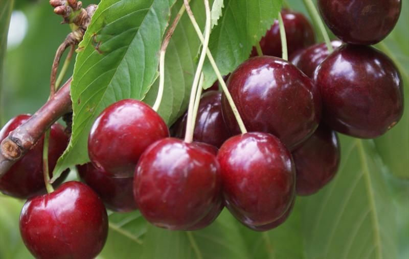 Плоды крупные, массой 6-8 г, темно-красные, репчатой формы. Мякоть красная, плотной консистенции, сочная. Вкус хороший, кисло-сладкий с сильным приятным вишневым ароматом. Транспортабельность хорошая.