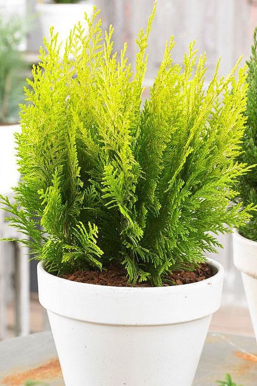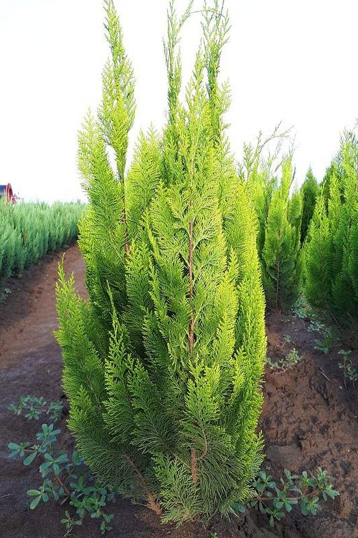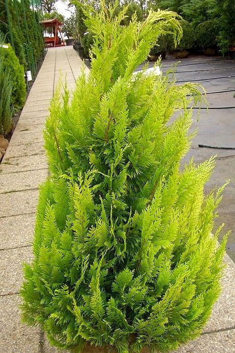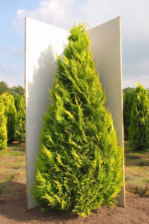 Кипарисовик Лавсона Ивонне (Ivonne) - сорт с плотной конической кроной и направленными вверх побегами.