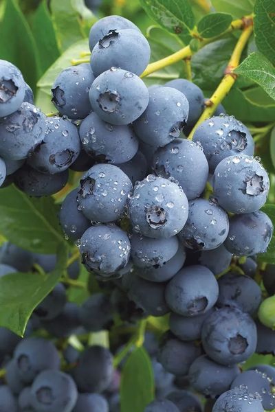 Плоды крупные, округлые, слегка приплюснутые. Вес 1,8-1,9 г, до 2,5 г. Кожица ягод голубая, с сизым налетом, гладкой текстурой. Приятный кисло-сладкий вкус сорта голубики Дюк отличается ароматным послевкусием.