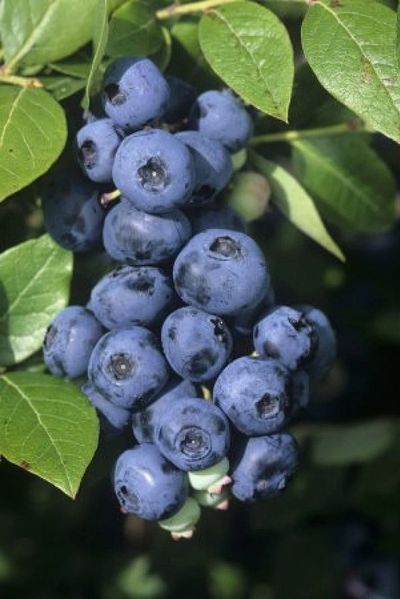 Голубика Блюкроп - высокорослый кустарник, способный разрастаться до высоты 2 м, при таком же диаметре кроны. Листва обыкновенная, эллиптическая. Хорошо растёт на солнечных участках. Имеет высокую морозоустойчивость.Плоды диаметром 15-17мм. В раннем возрасте зеленая листва, в осеннее время года становится красной. Беловатые цветки обладают сдвоенными околоцветниками. Данный сорт опыляется насекомыми. Сочные ягоды содержат в себе семена. Вкус плодов имеет сходство с плодами черники, но более сладок. Урожай с одного куста может быть до 5-7 литров.