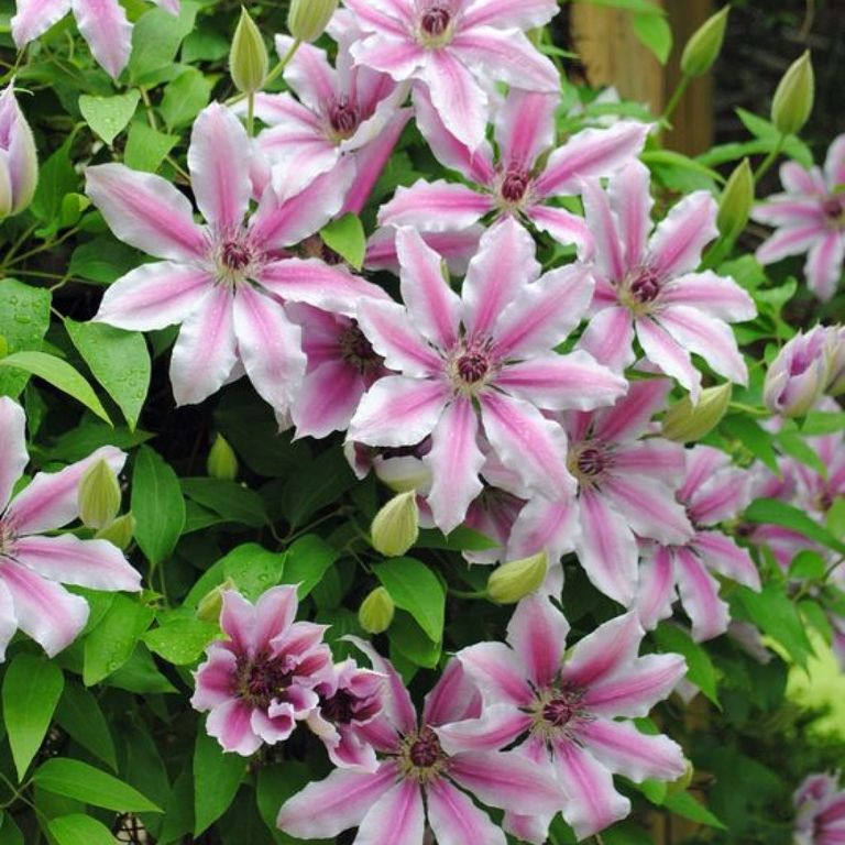 Клематис Nelly Moser В корзину Купить в 1 клик В корзину Купить в 1 клик Описание Описание Высота 2,5-3 м Период цветения май-июнь/август-сентябрь Окраска цветка розовая Величина цветка светло-розовый Обрезка слабая Группа обрезки 2