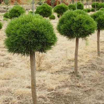 Оригинальный сорт карликовой сосны с плотной сферической формой. Он имеет длинные темно-зеленые иглы. Вырастает до 1-1,5м.