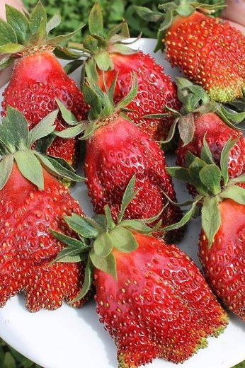 Ягоды цилиндрической формы, с шейкой, темно-красные, равномерно окрашены. Мякоть тёмно-красная, малосочная, плотная, дегустационная оценка свежих ягод 5,0 баллов.