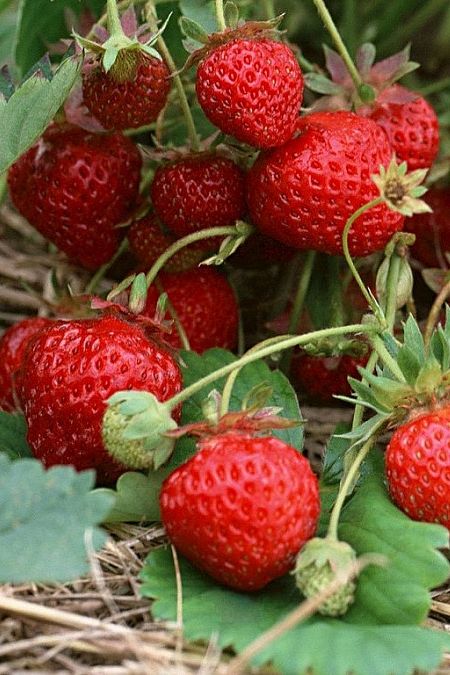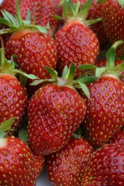 Ягоды крупные, тупоконической формы, без шейки. Кожица темно-красная, блестящая. Семянок много, слабо вдавленных в мякоть. Мякоть темно-красная, плотная, ароматная. Вкус сладкий. Урожайность высокая. Устойчивость к болезням средняя.