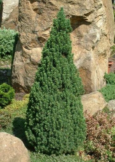 Форма кроны плотная конусовидная. Хвоя мягкая, светло-зеленая.