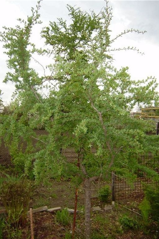 Хвоя мягкая, светло-зелёная летом, после приобретает золотистый оттенок хвои и становится ярким украшением осеннего сада, затем хвоя опадает.