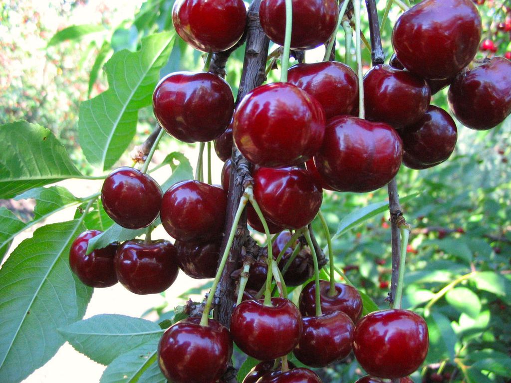 Плоды очень крупные массой 7-8 г, круглые, умеренно плотные, темно-красные. Мякоть нежная, темно-красная, отличного сладкого вкуса с нежным ароматом, сок красный.