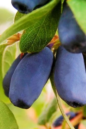 Ароматные плоды среднего размера, массой 0,7 - 0,9 г. Форма удлиненно-овальная с плоской верхушкой, голубовато-синие, с сильным восковым налётом. Вкус кисло-сладкий, без горечи. Осыпаемость низкая. Урожайность до 3 кг с куста.